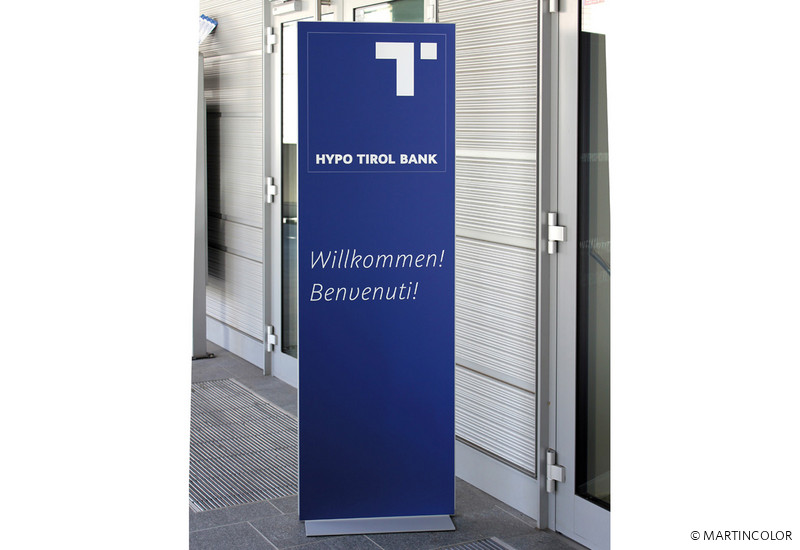 Den Aufsteller iPoint liefern wir Ihnen mit zwei doppelseitigen Alu-Verbundpaneels: silber und weiss matt für Digitaldruck. Sie können selbst entscheiden wie Sie jeweils die Vorder- und auch die Rückwand Ihres iPoints gestalten. Nach der Personalisierung werden die Alu-Verbundpaneels mit Silikon oder anderem geeigneten Klebstoff direkt am Profilrahmen verklebt.