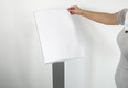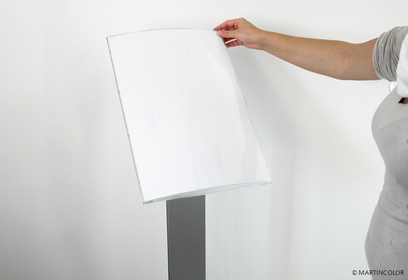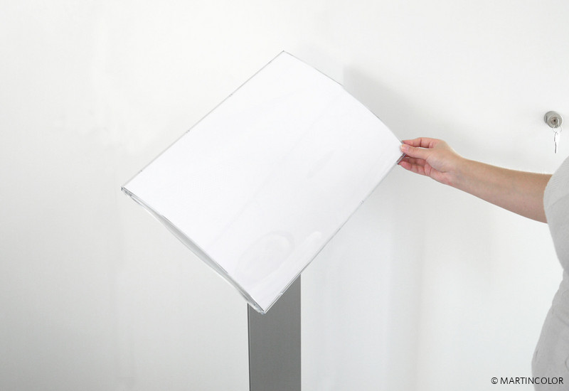 Pixquick floor ist ein freistehendes Bodendisplay aus der pixquick signage Serie. Es kann zur Einzelblattpräsentation von DIN A4 oder DIN A3 Informationen genutzt werden. Der Infohalter kann sowohl links als auch rechts geöffnet werden. Die Informationsblätter können horizontal oder vertikal eingelegt werden. So sind alle Information staubgeschützt und werden rahmenlos präsentiert. Der Austausch ist jederzeit ganz einfach möglich. Ein stabiler Standfuss und das silber eloxierte Aluminiumprofil runden dieses mobile Informations- und Beschilderungsdisplay ab.