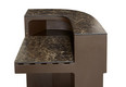 Der hintere Teil des Thekencopus ist offen konzipiert. Daher wird immer eine Arbeitsplatte (DESK) benötigt. Für die Ablagelagefläche auf der Gastseite bieten wir unterschiedliche Auflagen (TOP) an. Alle Auflagen, Arbeitsplatten und Regalböden werden aus HPL gefertigt und sind auch für den Outdoor-Einsatz geeignet.