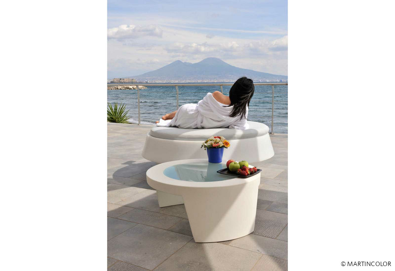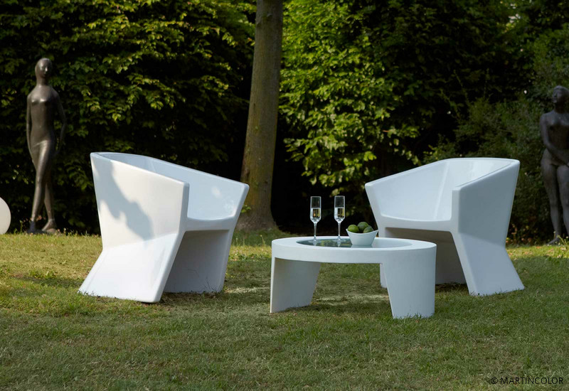 Der Couchtisch "Tao" überzeugt durch klare Linien und ein puristisches Design. Der Korpus ist aus wiederverwertbarem Polyethylen. Der in die Tischplatte eingelassene, opale Glaseinsatz, verleiht dem hochwertigen und eleganten Couchtisch eine besonders edle Note. Wegen seines außergewöhnlichen Designs eignet sich der Tisch "Tao" auch für Messen, Ausstellungen, Events oder für den hochwertigen Launchbereich von Veranstaltungen. Selbstverständlich ist der Beistelltisch "Tao" wetterfest und sowohl im Indoor- als auch im Outdoor-Bereich einsetzbar. "Tao" ist in vielen Farben erhältlich: grün, orange, rot, schwarz, weiß... Der Tischdurchmesser beträgt Ø 80 cm x H 34 cm. Der eingelassene, opale Glaseinsatz hat einen Durchmesser von Ø 57,5 cm.