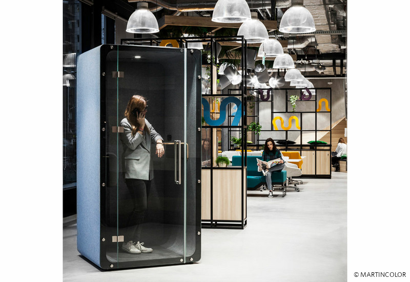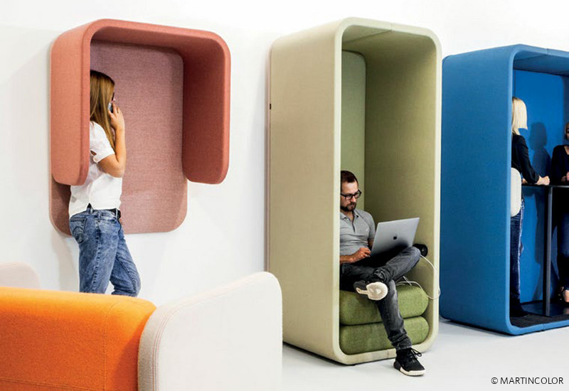 Wenn in einem „Open Space“-Büro schallisolierte Rückzugsorte gesucht werden, ist MELLO eine Oase der Ruhe! Inspiriert von der Optik einer Kabine bietet MELLO Stehplatz und Sessel in einem. Die Raum-in-Raum-Lösung MELLO bietet Schutz und Privatsphäre beim Telefonieren, beim konzentrierten Arbeiten oder einfach zum Entspannen. Gerade bei den neuen, offenen Bürolandschaften ist es wichtig, allen Büroaktivitäten die passende Plattform zu bieten.