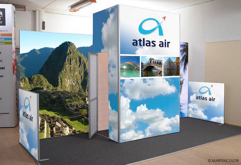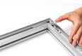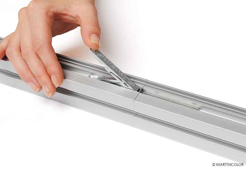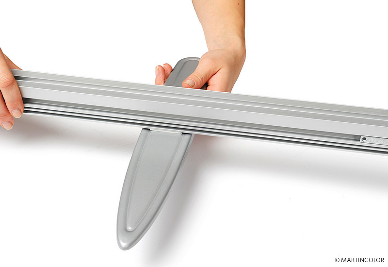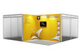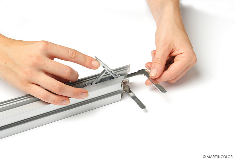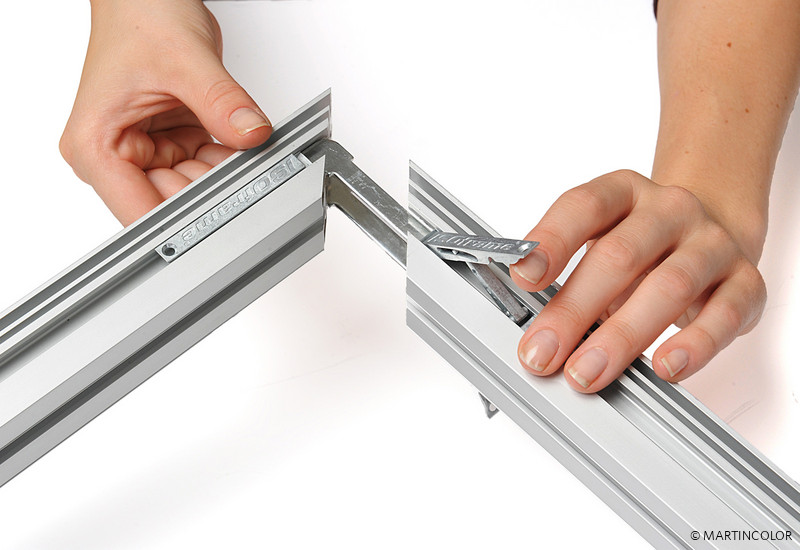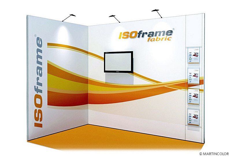 The ISOframe Fabric exhibition system is the world champion of self-construction exhibition booth systems! The basic structure of the system are aluminum profiles assembled with FAST Clamp connectors. The standard profile dimensions of the sets are 27, 47 and 100 cm. No tool is needed to build this structure. The ISOframe Fabric aluminum profiles have a circumferential groove in which the individually printed, textile fabric is inserted. Thus, the entire exhibition stand is equipped with graphics covering. The textile covering is so practical because it can be easily transported and folded to a small degree. Even a large exhibition stand can easily be transported in a station wagon. Appropriate support feet are available for use as a freestanding textile wall.