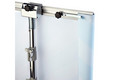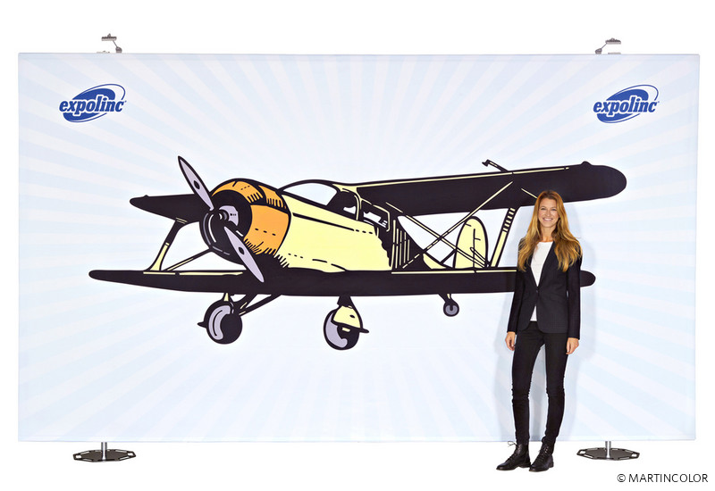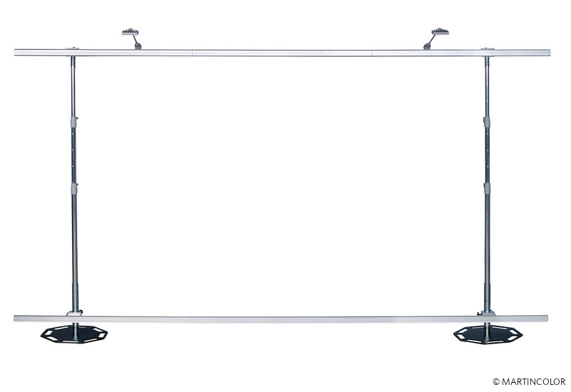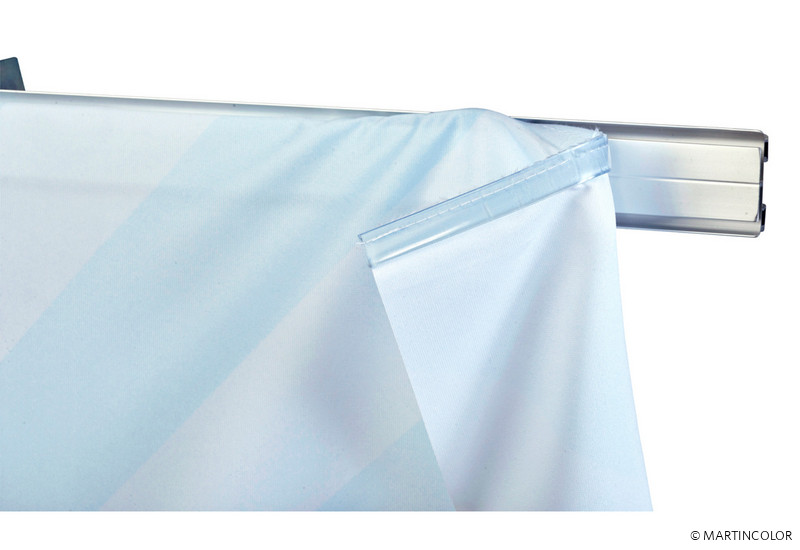 Miracle Fabric is a new development of the Swedish manufacturer Expolinc. The system framework consists of sturdy base plates, available either in black or silver, into which telescopic rods are screwed. Thanks to a patented click mechanism, concave, convex or straight profiles can be attached to the telescopic poles. By means of rubber lip, the textile covering is then introduced wrinkle-free in the profiles. Please note, however, that the fabric is translucent. The size and shape is determined solely by the telescopic rods on the back and the profiles (straight, concave or convex). Additional 90 ° profiles allow superstructures over corners. The maximum height is 290 cm. The system width can be repeatedly extended by profile pieces of 110 cm. With only two foot plates, e.g. a partition of B: 440 x H: 290 cm implementable. The entire system technology can be set up and transported by one person without tools. For smaller wall systems, we recommend the 3-piece bag set for transport. Larger exhibition or partition walls fit up to 18 square meters of textile wall to fit in a transport box. So the whole system is very mobile and easy to handle. The transport box can be converted to the counter. Cover plates are available in silver and white. With high-quality LED spots, the entire presentation wall can be effectively staged.