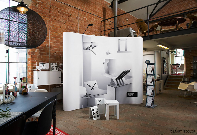Expand Media Wall is the successor to the well-known Expand 2000 system. Expand 2000's basic framework consists of a foldable scissor lattice system on which individually printed graphic panels can be attached using magnetic strips. Thanks to the patented system technology, within a few minutes a slightly curved presentation wall, with your advertising message, is ready to use. Expand Media Wall is available in different sizes and shapes. Media Wall can be used either as a pop-up display or as an expandable exhibition stand. Combining straight and curved systems together and extending them to integrated showcase or storage elements, creates a high-quality, quick to set up exhibition solution.