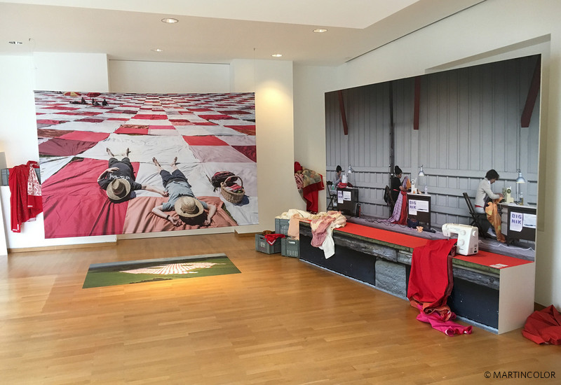 The exhibition "Picnic" can be seen at the Museum Angewandte Kunst in Frankfurt until 17 September 2017. The exhibition deals with the phenomenon of picnicking and follows the fascination of dining in the open air across different times and cultures. On more than 1,000 square meters of exhibition space, picnic utensils of various shapes, styles and origins, numerous objects, installations, photographs and films tell of the rich variety of a popular cultural practice. MARTINCOLOR equipped this exhibition with numerous wallpaper & textile prints, floor adhesives, fabrics, pictures, writing boards and wall decals. The complete installation of illustrations and writings were also taken over by MARTINCOLOR.