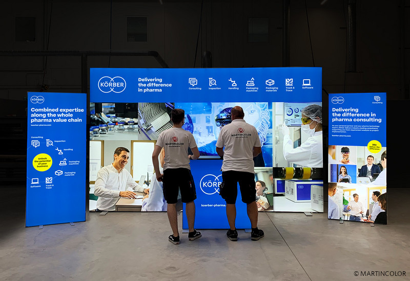 MARTINCOLOR is the specialist for assembly, construction of exhibition equipment and attachment of advertising and signage in your office, on your exhibition stand, at your event or events. Of course, we also take on the entire design, production and manufacture of the exhibition stands, large picture areas and advertising displays in advance. Our highly qualified assembly team consists of advertising technicians, master painters, electricians and carpenters. Depending on requirements, these are put together for on-site assembly. We assemble for you throughout Germany: Acrylic pictures, textile stenter frames, wallpapers, office control systems, window stickers, lettering, construction and advertising signs, facade banners, light boxes and much more. No matter whether in your office, with your customer, at the exhibition stand or event (indoor and outdoor). For more information and prices, please contact our specialist at 069-756080-27.