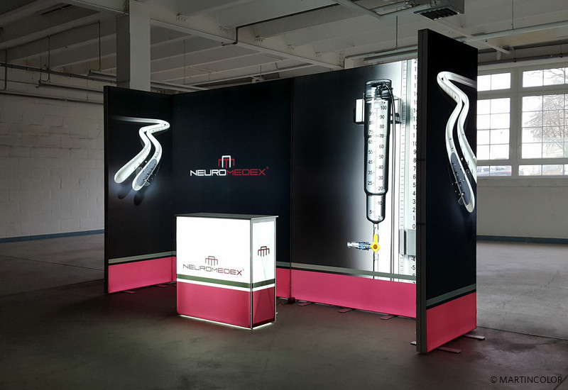 The company Neuromedex is a specialist in ventricular drainage & medical disposable products based in Hamburg. Our LED booth ALU LightUp was chosen for the company's trade fair presence, because this trade fair system has an optimal price-performance ratio.