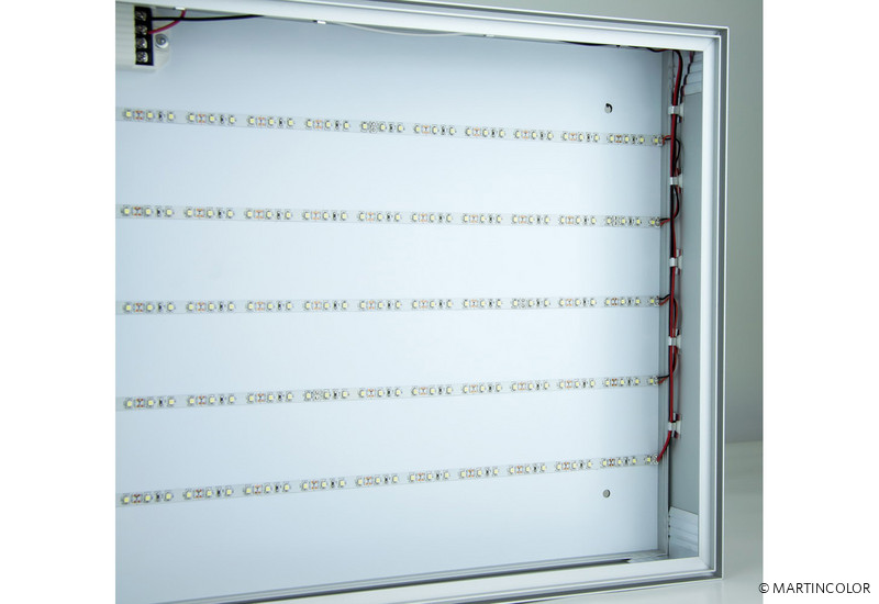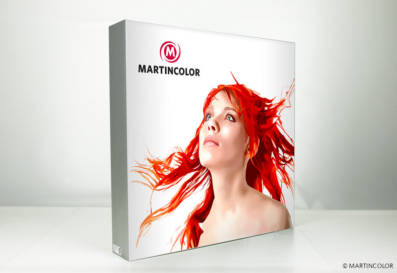 We build and construct illuminated displays, illuminated frames and light boxes in all versions and variants for different purposes. It does not matter if you need a super-flat illuminated frame, which is provided with a large-area textile tensioning slide, a snap-in frame in which backlight slides are inserted or double-sided illuminated displays with feet for room division. Depending on the design and construction depth, an LED concept is ready for execution. Of course, also light cubes, round light boxes or other forms can be implemented. On request, our in-house assembly team installs your light displays on site. MARTINCOLOR - The Specialist in the "Lighting advertising" sector.