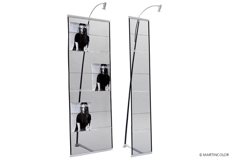 The Expand brochure holder is a brochure stand that can be rolled up to a minimum. Hardly any brochure holder has a lower weight (2 kg), can be built up within a few seconds and rolled up to such a small amount. In addition, the Expand brochure holder has a very beautiful design and is available in two variants.