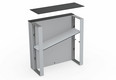 The ALU STAR counter is finally also available as a "PLUS" version with an integrated shelf. The elegant LED counter has a comfortable depth of 48 cm and consists of an aluminum frame system. The front surface of the LED counter, which is backlit with high-quality OSRAM LEDs, has a size of 100x100 cm. To fix the shelf, additional aluminum profiles are attached at a 90 degree angle, which are also covered with a graphic. A shelf is placed between these two side parts. The counter top and the shelf are black. The entire LED counter is stowed in a rollable ABS transport case (format 116x30x39 cm) with specially made foam inserts. The transport weight is 30 kg.