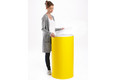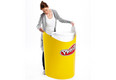 The mobile counter SWIFT comes from the family of promoter counters. It is extremely variable. Whether as a bar column in two different heights, as a presentation platform or as a multimedia display, the counter top offers a place for your iPad. With a diameter of 48 cm and a height of 90 cm (alternatively 45 cm), the SWIFT bar pillar is the center of attention at your trade fair or event. The entire body can be printed individually and can be completely disassembled and folded without tools. Due to its low weight and packing volume, it can be easily transported or shipped. Due to the low price, the counter SWIFT iPad is also suitable for larger print runs.