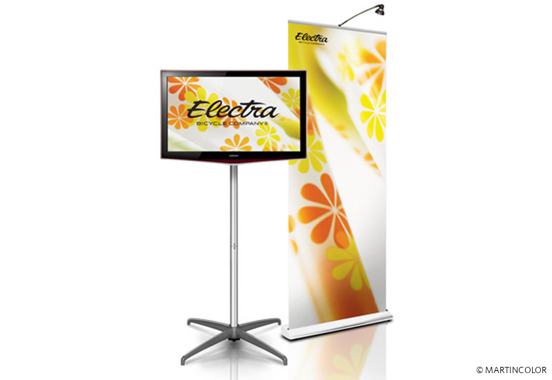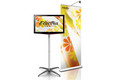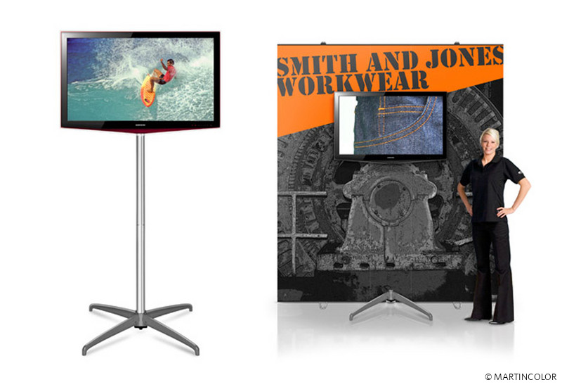 The Expand MonitorStand XL is an extra-large and visually appealing holder for monitors and flat screens up to 42 kg or 60 "size. The base of the foot is 76.2 x 76.2 cm. The bar profile has a practically accessible cable channel for power and data cables. Four heights on the bar profile are possible: 160, 170, 180 and 190 cm. The effective total height varies by the particular screen model used and its size and the respective height lock. The overall construction is delivered in two alternatives: a) Stand profile 3-piece for transport in a sturdy transport bag or b) Stand profile in one piece for transport in two bags, whereby the bag for the stand profile is 2 m long. Both packaging units weigh only approx. 20 kg (without monitor). If required, a keyboard shelf is available as an accessory.