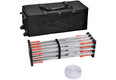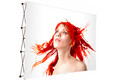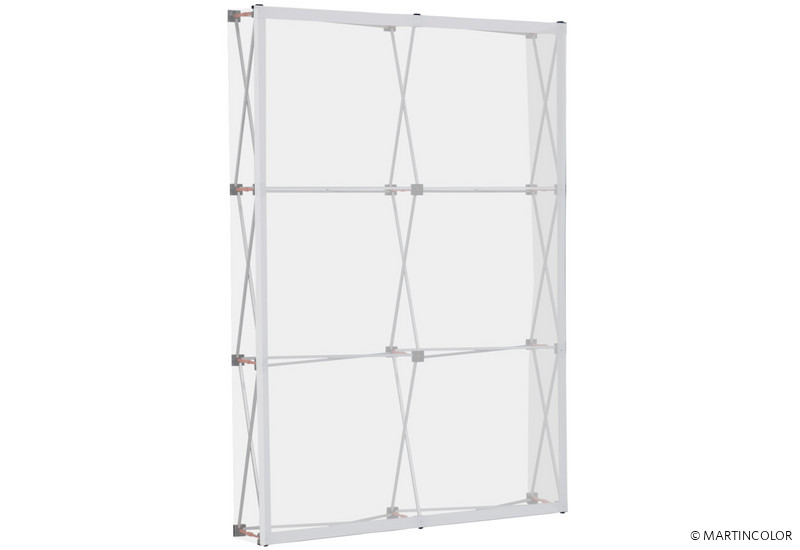 Since August 2017, the system frame has been supplied with an all-round velcro frame on which the individual fabric upholstery is mounted. Instead of the system fixation magnetic connector used in the Easy Fabric System, there are now brand new orange colored clips for stable and pin-point locking of the frame. So the textile graphic print is always optimally stretched. The printing of the individualized graphics is done by high-resolution textile sublimation process, optionally with or without side paneling. The textile graphic print remains on the system even when the display is folded up and stored in the transport trolley.