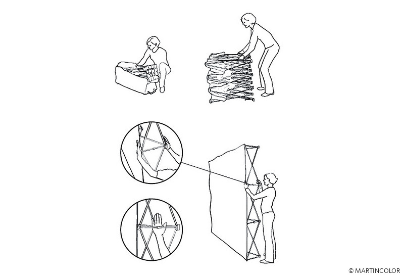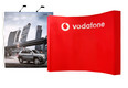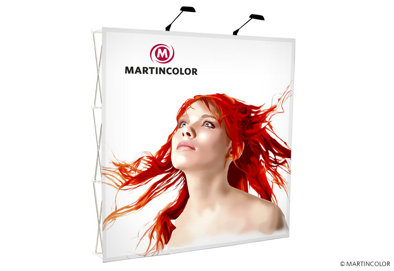 Media Fabric is a large, textile-covered folding display that can be set up in seconds and effortlessly - the perfect choice for a short-term presentation or event. The printing of the individualized graphics is done via high-resolution textile sublimation process, optionally with or without paneled side panels. The textile printing is attached to the system by means of a Velcro frame so that it is tensioned evenly when it is first attached. The graphic does not need to be removed during dismantling and transport. Since the textile fabric is attached to a Velcro frame, an exchange is readily possible.