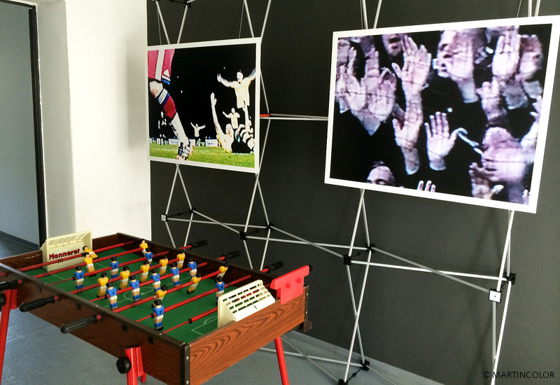 Als Konkurrenzveranstaltung zum legendären Chase Corporate Challenge-Lauf in Frankfurt, fand bei MARTINCOLOR in der Alten Fabrik die Ausstellungseröffnung „Der Ball rollt. Fußball-Fever“ von der Fotografin DORIS LACERTE statt. Doris Lacerte war lange Zeit für weltweit agierende Werbeagenturen als Creative & Art Director tätig und hat u.a. mit Helmut Newton, Oliviero Toscani, Jeanloup Sieff und Peter Lindbergh gearbeitet. Anlässlich der Fußball-WM hat Lacerte sich ganz auf das Thema Fußball konzentriert. Entstanden sind dynamische und spannungsreiche Fotografien – alle großflächig über umweltfreundlichen Latex-Druck produziert. Doris Lacerte schafft das Einmalige und lässt Fußballspielen zur Kunst werden.
