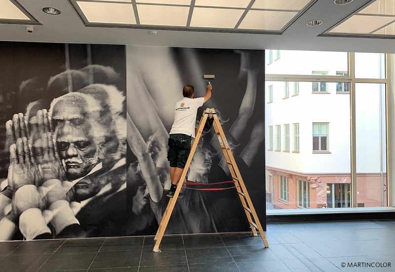 MARTINCOLOR produzierte für die Ausgestaltung der Ausstellungsfläche zahlreiche großformatige Wandtapeten, die in der hauseigenen Large-Format-Druckerei über umweltfreundliches Latex-Verfahren erstellt wurden. Auch die Installation der Tapeten vor Ort erfolgte durch unsere Montage-Profis.