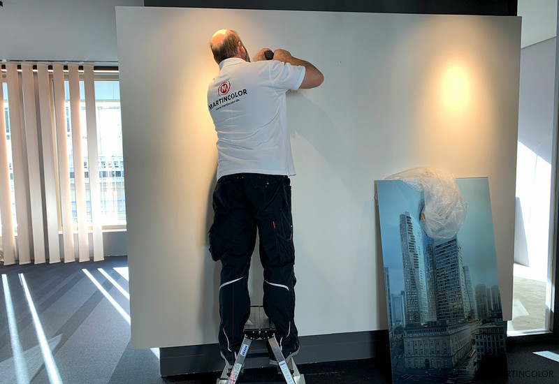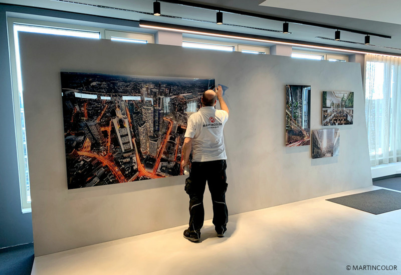 Auch für das Ausstellungsprojekt von Groß & Partner wurden Fotografien, die bei MARTINCOLOR abgestimmt und gefertigt wurden, von unserer Konfektionierung hinter 10 mm Acryl verklebt und dann im Sandwich mit einer 3 mm dicken AluDibondplatte verbunden und mit Galerie-Aufhängern versehen. Haben Sie Fragen zu diesem Verfahren? Eric Zies freut sich über Ihren Anruf unter 069-7560800.