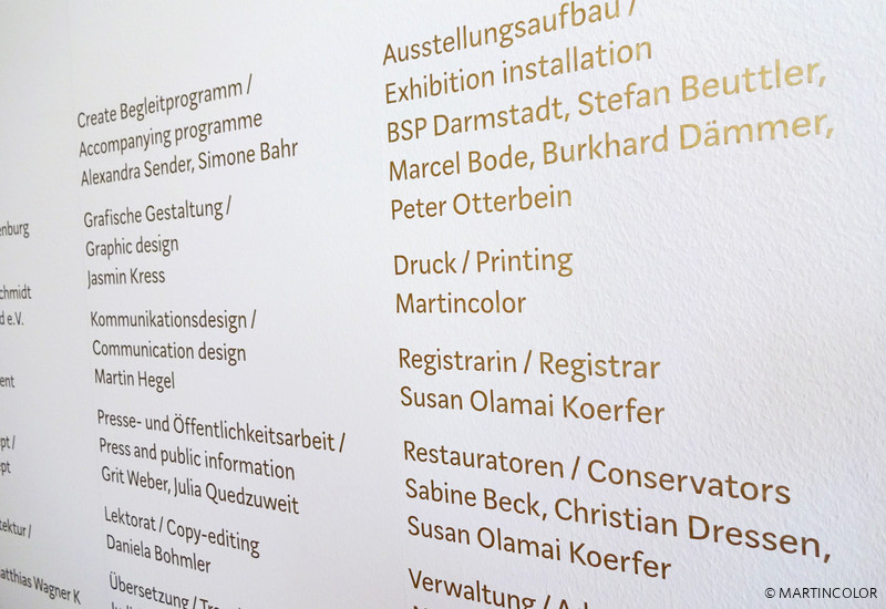 MARTINCOLOR übernahm die Produktion der in der Ausstellung gezeigten, großformatigen Tapetendrucke. Diese wurden von dem MC Montageteam vor Ort montiert. Außerdem wurde eine Vielzahl von Beschriftungen erstellt, die die Ausstellungsinhalte dokumentieren.