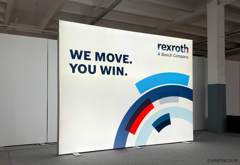 ALU STAR Leuchtwände sind beeindruckend in ihrer Wirkung. Das fand auch unser Kunde, die Bosch Rexroth AG. Anders als alle LED-Messewände aus unserem Programm ist die Lichtwand ALU STAR eine der wenigen modular erweiterbaren Leuchtsysteme überhaupt. Durch ein Extension-Set kann eine ALU STAR Leuchtwand auch nachträglich um die Systembreite 50, 75 oder 100 cm erweitert werden kann. Für den Einsatz auf einer Messe oder Veranstaltung muss dann nur noch die entsprechend große Diabespannung dazu bestellt werden. Fragen Sie gerne nach den weiteren Möglichkeiten und Vorteilen der LED-Messewand ALU STAR. Wir beraten Sie immer gerne.