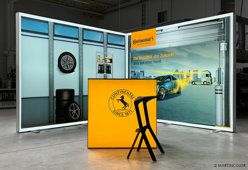Wie Sie bei unserem Kunden „Continental“ sehen können, ist die ALU STAR Leuchtwand die optimale Lösung für ein Messestand. Darüber hinaus ist dieses aus hochwertigen Aluminiumprofilen bestehende Leuchtsystem vielseitig einsetzbar. Sie können die in unterschiedlichen Breiten und Höhen verfügbaren Leuchtwände nebeneinander oder über Eck verbinden und erzielen dabei eine atemberaubende Raumverkleidung. Durch das Zusammensetzen der Wandmodule besteht zusätzlich die Möglichkeit einer Ergänzung von Messekabinen mit Tür, Brückenmodulen und Monitorhalterungen. Eine ideale Lösung für Ihren Messestand.