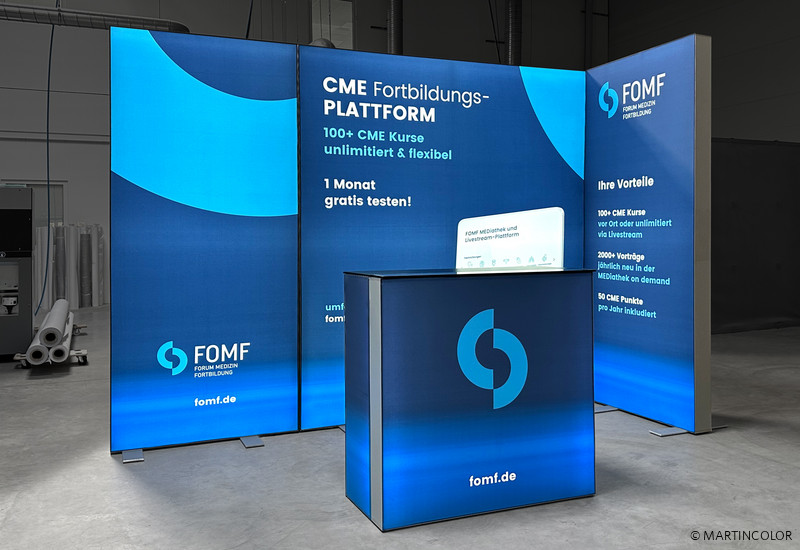 Die ALU STAR Leuchtwand ist der absolute Hingucker auf dem Messegelänge. Die qualitätsvollen Aluminium-Rahmen sind in verschiedenen Größen erhältlich und können je nach Belieben unterschiedlich aufgestellt werden. Entweder nebeneinander, über Eck oder versetzt. So, wie der Platz im Raum es ermöglicht. Individuelle Textilgrafiken können ganz einfach, auch beidseitig, in die umlaufende Systemnut der Aluminiumprofile eingesteckt werden. Alles lässt sich schnell und einfach auf- und abbauen. Ein weiterer Eye-Catcher ist die ALU STAR LED-Leuchttheke, die sich gerne im Vordergrund zeigen lässt. Diese kann ebenfalls beidseitig mit Textildiadrucken verkleidet werden. Das komplette Messesystem passt in praktische hochwertige Koffer oder Taschen und lässt sich gut und einfach transportieren.