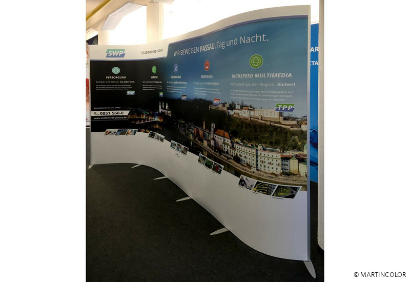 Im Auftrag der Agentur Graswald + Heiligtag erstellte MARTINCOLOR einen Messestand über ISOframe Wave für die Stadtwerke Passau. Im Vorfeld wurden dem Kunden verschiedene Messelösungen und Messeumsetzungen vorgestellt. Aufgrund der großen Einsatz-Flexibilität entschied dieser sich für einen ISOframe Wave Messestand. Um die vielfälltigen Aufbaumöglichkeiten des Messestands präsentieren, erstellte MARTINCOLOR unterschiedliche 3D Visualisierungen. Mit dem Messestandsystem ISOframe Wave ist es möglich, unzählig viele Standvariationen aus einem System umzusetzten. Je nach Anforderung können ISOframe Wave Messewände gerade, geboden, "um die Ecke", rund und wellenförmig eingesetzt werden. Möglich wird dies über ein patentieres Flexilink, dass die einzelnen modularen Segmete miteinader verbindet. Mehr Informationen erhalten Sie unter Tel. 069-756080-84.