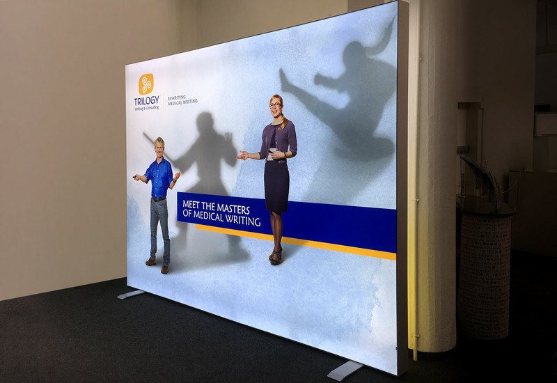 Mit der leuchtenden Messewand OCTAlumina ist der Messestand der Schreibagentur Trilogy Writing & Consulting GmbH ein Eyecatcher auf jeder Veranstaltung, jeder Messe und jedem Event. Durch die mobile Bauweise ist die OCTAlumina Leuchtwand leicht aufzubauen. Einfach die Aluminiumprofile zusammenstecken und mit einem Torx fixieren. Die POWER LEDS sind vormontiert und befinden sich direkt in den Aluminiumprofilen des Systems. Nach dem Verbinden der Profile müssen nur noch die LED Anschlüssen zusammen gesteckt werden. Je nach Möglichkeiten des Transports können die Aluminiumprofile des OCTAlumina Messestandes in jeder gewünschten Länge gefertigt werden. Die Profiltiefe beträgt 12 cm. Die Bespannung der OCTAlumina Messewand erfolgt auf spezielles HD-Diamaterial, dass gerollt transportiert wird. Wir beraten Sie gerne persönlich unter Tel. 069-756080-84.