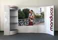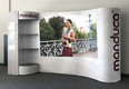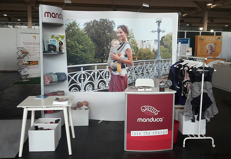 ISOframe wave eröffnet völlig neue Möglichkeiten für Ihren Messestand. Das Ausstellungssystem mit der patentierten Flexi-Link-Verbindung lässt sich in fast jede gewünschte Form bringen – ganz nach Bedarf und den gegebenen Stellmöglichkeiten. Je nach Einsatz und Anforderung werden beliebig viele Flexi-Link-Verbinder aneinandergefügt, das Gestänge hineingesteckt und das gesamte Display in die gewünschte Form gebogen. Die patentierte Flexi-Wellen-Verbindung sorgt auch beim Biegen und Dehnen des Displays bis zu 180° für maximale Standstabilität. Mit passenden Extension-Modulen lässt sich ISOframe beliebig um jeweils 80 cm breite Einheiten verlängern. Dank der Schnell-Klemm-Verbindungselemente ist die Montage werkzeuglos durchführbar. Zusätzliche Träger ermöglichen das Anbringen von Regalen, Tischelementen, TFT- oder LCD-Bildschirmen. ISOframe wave ist in zwei Höhen erhältlich: 2290 mm (Midi) und 2490 mm (Maxi). Unser Kunde Wickelkinder Gmbh entschied sich für die Midi-Version und wählte als Zusatz das Regal- und das Prospekthalter-Modul.