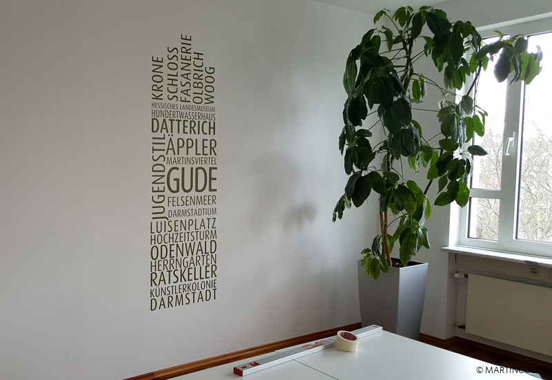 Für die Agentur für Kommunikation bauchgefühl fertigte MARTINCOLOR Wand-Tattoos und Glas-Klebefolien, die anschließend von dem MARTINCOLOR-Montageteam vor Ort angebracht wurden. MARTINCOLOR ist der Spezialist für visuelle Ausstattung von Büroräumen und fertigt neben Wand-Tattoos und Klebeschriften auch Firmenschilder, individuelle Tapetendrucke und hochwertige Wandbilder hinter Acryl an. Mehr Informationen erhalten Sie unter Tel. 069-756080-0.