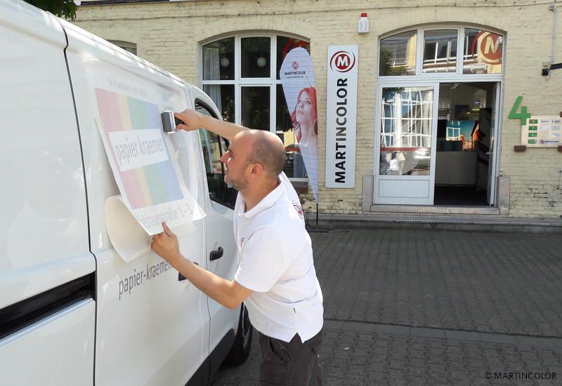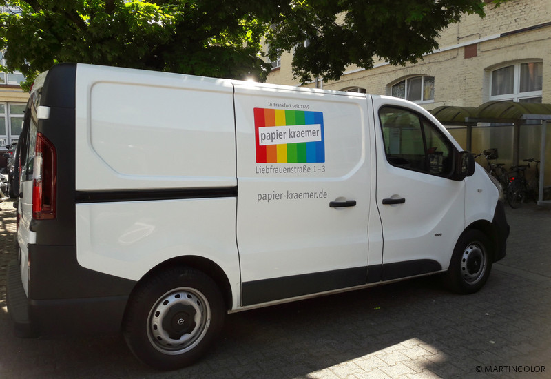 Für den Frankfurter Papierwaren-Speziallisten Papier-Kraemer beklebte MARTINCOLOR die gesamte Fahrzeugflotte mit individueller Fahrzeugbeschriftung. Hierzu wurde das Firmenlogo auf eine spezielle Car Wrapping Folie gedruckt und auf die Lieferwagen aufgezogen.Mehr Informationen zu Fahrzeugbeklebungen erhalten Sie unter Tel. 069-756080-81.