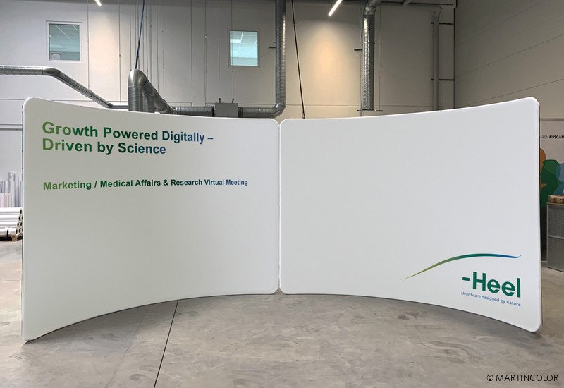 Der Hersteller für Biologische Heilmittel Heel, benötigte für interne Pressekonferenzen eine große, flexibel einsetzbare Rückwand. Die Wahl fiel hier auf unser Rückwand-System ZippWall, das sich besonders gut als Hintergrund für Videokonferenzen eignet.