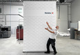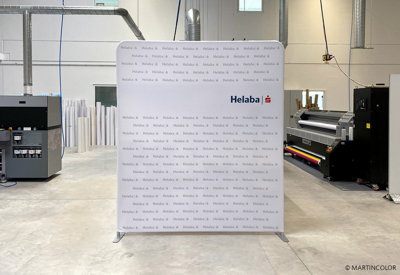 Für die Helaba - Die Landesbank Hessen-Thüringen, produzierten wir eine Rückwand für Online-Meetings. Besonders geeignet ist unsere Rückwände ZippWall. Sie ist in vielen verschiedenen Formaten erhältlich. Für den Einsatz auf Videokonferenzen werden in den meisten Fällen Wandgrößen von 200x230 cm, wie bei der Helaba zu sehen, 250x230 cm oder 300x230 cm eingesetzt. Mit der ZippWall Rückwand sind aber auch Wandbreiten bis zu 600 cm umsetzbar. Die Struktur der Wand besteht aus einem Rahmen, der einfach zusammen gesteckt wird. Da die einzelnen Module nummeriert sind, ist der Aufbau völlig unkompliziert. Die Bespannung des Rahmens mit einem individuell gedrucktem Textilmaterial kann ein- oder doppelseitig produziert werden. Neben bedruckten Bespannungen mit Logo- oder Bildmotiven, können wir natürlich auch neutrale oder Greenscreen Bespannungen herstellen. Besonders praktisch ist der Transport ZippWall Rückwand. Sie wird, zusammen mit dem faltbaren Stoff, einfach in einem PKW-kompatiblen Transport-Rollkoffer vertaut und kann so überall hin mitgenommen werden.