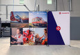 Mehrere ZippWall Rückwände können zu einer großformatigen Rückwand zusammen gestellt werden. Detailinformationen zu diesem System finden Sie auf unserer Internetseite unter https://www.martincolor.de/praesentationssysteme/indoor-systeme/messewaende/zippwall-straight.html