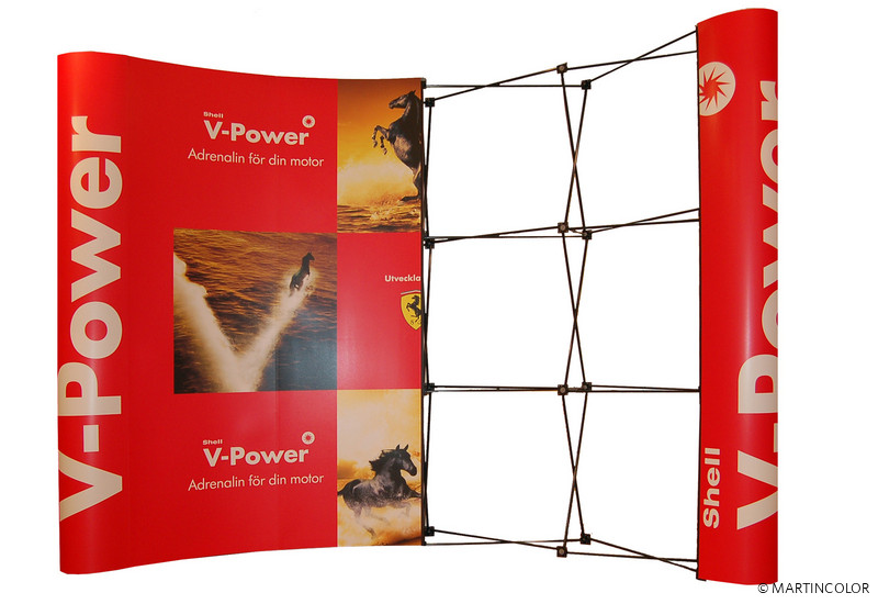 Das Grundgerüst von Expand 2000 besteht aus einem faltbaren Scherengittersystem an dem individuell bedruckte Grafikpanels mittels Magnetstreifen angebracht werden können. Brandschutzzertifizierung: Bitte teilen Sie uns im Vorfeld mit, ob Sie für Ihre Grafikbahnen eine B1 Zertifizierung benötigen. Durch die patentierte Systemtechnik ist innerhalb von weniger Minuten eine leicht gewölbte Präsentationswand, mit Ihrer Werbebotschaft, einsatzfertig aufgestellt. Expand 2000 ist in verschiedenen Größen und Formen erhältlich.