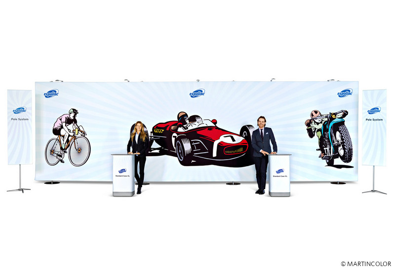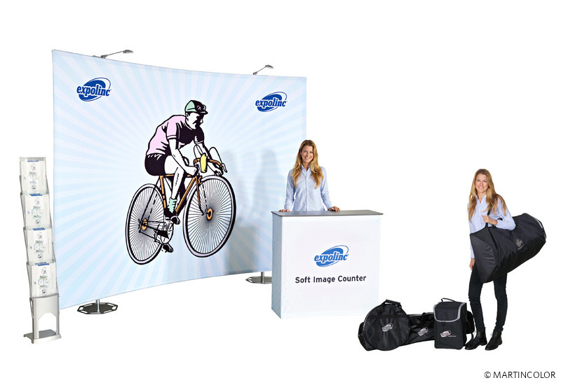 Miracle Fabric ist eine Neuentwicklung des schwedischen Herstellers Expolinc. Das Systemgerüst besteht aus stabilen Fußplatten, wahlweise in schwarz oder silber lieferbar, in die Teleskopstangen eingeschraubt werden. Durch einen patentierten Click-Mechanismus werden an den Teleskopstangen wahlweise konkave, konvexe oder gerade Profile befestigt. Mittels Gummilippe wird dann die textilen Bespannung in die Profile knitterfrei eingebracht. Bitte beachten Sie aber, dass der Stoff lichtdurchlässig ist. Die Größe und Form bestimmt sich alleine anhand der rückseitigen Teleskopstangen und der Profile (gerade, konkav oder konvex). Zusätzliche 90°-Profile ermöglichen Aufbauten über Eck. Die maximale Bauhöhe beträgt 290 cm. Die Systembreite kann immer wieder um Profilstücke von 110 cm erweitert werden. Mit nur zwei Fußtellern ist z.B. eine Stellwand von B: 440 x H: 290 cm umsetzbar. Die gesamte Systemtechnik lässt sich ohne Werkzeug von einer Person aufbauen und transportieren. Für kleinere Wandsysteme empfehlen wir zum Transport das 3-teilige Taschenset. Größere Messe- bzw. Stellwände passen bis zu 18 qm Textilwand passen in eine Transportbox. So ist das ganze System sehr mobil und einfach zu handeln. Die Transportbox lässt sich zur Theke umwandeln. Deckelplatten sind in silber und weiß verfügbar. Mit hochwertigen LED Spots kann die gesamte Präsentationswand wirkungsvoll in Szene gesetzt werden.