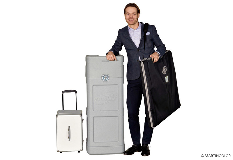 Miracle Fabric ist eine Neuentwicklung des schwedischen Herstellers Expolinc. Das Systemgerüst besteht aus stabilen Fußplatten, wahlweise in schwarz oder silber lieferbar, in die Teleskopstangen eingeschraubt werden. Durch einen patentierten Click-Mechanismus werden an den Teleskopstangen wahlweise konkave, konvexe oder gerade Profile befestigt. Mittels Gummilippe wird dann die textilen Bespannung in die Profile knitterfrei eingebracht. Bitte beachten Sie aber, dass der Stoff lichtdurchlässig ist. Die Größe und Form bestimmt sich alleine anhand der rückseitigen Teleskopstangen und der Profile (gerade, konkav oder konvex). Zusätzliche 90°-Profile ermöglichen Aufbauten über Eck. Die maximale Bauhöhe beträgt 290 cm. Die Systembreite kann immer wieder um Profilstücke von 110 cm erweitert werden. Mit nur zwei Fußtellern ist z.B. eine Stellwand von B: 440 x H: 290 cm umsetzbar. Die gesamte Systemtechnik lässt sich ohne Werkzeug von einer Person aufbauen und transportieren. Für kleinere Wandsysteme empfehlen wir zum Transport das 3-teilige Taschenset. Größere Messe- bzw. Stellwände passen bis zu 18 qm Textilwand passen in eine Transportbox. So ist das ganze System sehr mobil und einfach zu handeln. Die Transportbox lässt sich zur Theke umwandeln. Deckelplatten sind in silber und weiß verfügbar. Mit hochwertigen LED Spots kann die gesamte Präsentationswand wirkungsvoll in Szene gesetzt werden.