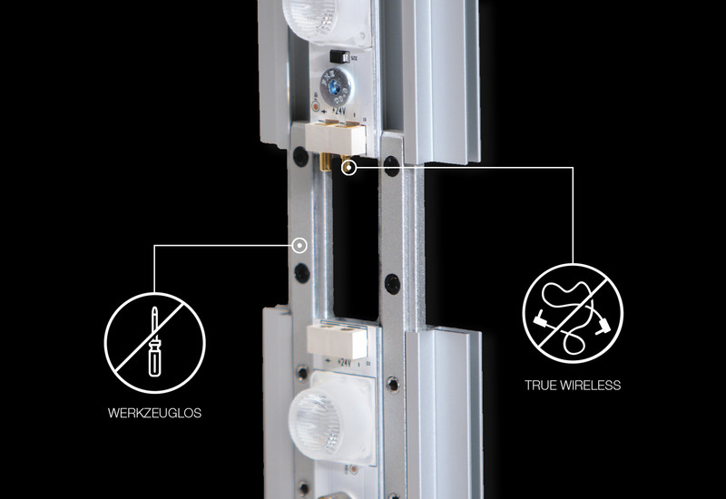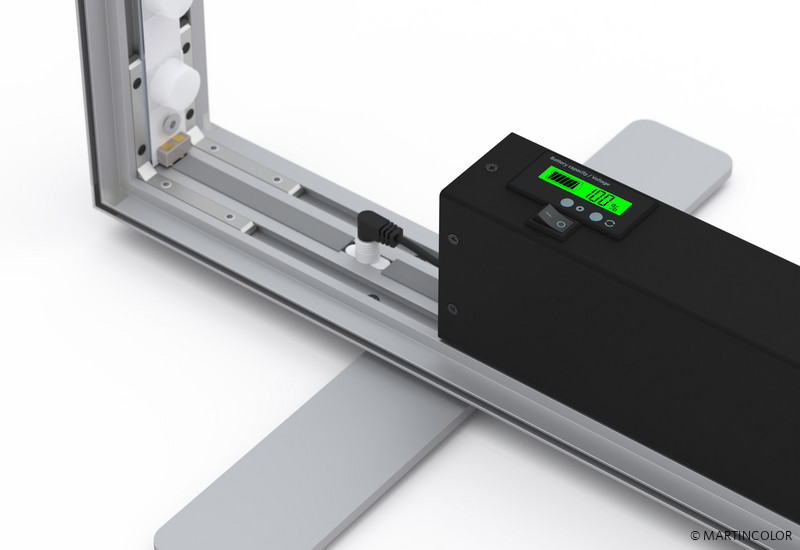Endlich gibt es ein LED Leuchtdisplay mit integriertem Akku - das neue LED-Display GLOW UP. Ideal für einen kabellosen Einsatz wenn z.B. keine Steckdose bereit steht oder das Leuchtdisplay kabellos mitten in einem Raum platziert werden soll. Wie unsere vielen anderen Leuchtdisplays auch, kann GLOW UP doppelseitig mit individueller Diabespannung versehen werden. Die hocheffizienten LED Module sind in dem Aluminiumprofil des Rahmens bereits einsatzfertig montiert. Die Aluminiumprofile werden zum Aufbau einfach zusammen gesteckt. Die Beleuchtung hat eine Systemleistung von 50 Watt, 12.600 lm und eine Farbtemperatur von 6.500 Kelvin. Der Clou von GLOW UP Battery ist allerdings der integrierte Akku aus einem leistungsstarken Lithium–Ionen Powerpack, der eine Laufleistung von 10 Stunden besitzt. Das LED-Rahmensystem ist in einem praktischen ABS-Transportkoffer mit Rollen verpackt und damit ideal für den stabilen Transport.
