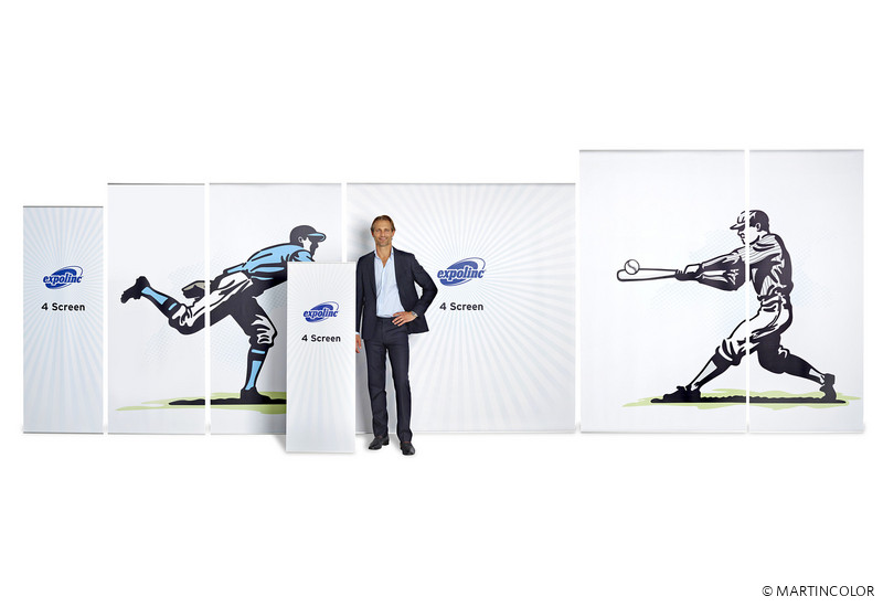 Das 4screen Banner ist der ideale Begleiter für den kurzfristigen und flexiblen Einsatz auf Präsentationen und Ausstellungen. Mit diesem hochwertigen Bannerdisplay wird Ihre Werbebotschaft perfekt in Szene gesetzt. Durch die filigranen Klemmprofile am Fuß und Kopf des Displays lässt sich das individuelle Grafikbanner einspannen und schnell auswechseln. Das schlichte Design lenkt nicht von der Bildaussage ab. Durch die sieben verschiedenen Displaybreiten (B: 55/70/85/100/115/145/200 cm) fügt sich das 4 Screen Classic in jeden Messestand, Ausstellungs- oder Besprechungsraum problemlos ein. Die Systemhöhe beträgt 216 cm. Durch Kombination mehrerer Bannerdisplays können Sie auch eine komplette, fast nahtlose Wand erstellen. Das 4screen Classic ist eines der preisgünstigsten Marken-Bannersystem und somit hochinteressant für qualitativ hochwertige Auflagenproduktion.