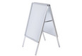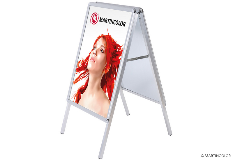 Der doppelseitiger Kundenstopper mit Rondo-Klapprahmen ist sehr stabil mit 25 x 25 mm starkem Standprofil ausgestattet. Die doppelseitig aufmontierten 32-mm-Klapprahmen bestehen rückseitig aus einer extrem schlagfesten, rostfreien Metallwand. Der Plakatständer ist wetterbeständig mit integriertem Wasserablauf im Unterprofil und UV-stabilisierter, nicht reflektierender Abdeckfolie. Auf Wunsch auch lieferbar in fast allen RAL-Farben. Aufsatzschild, passende Prospektkörbe und Schreibtafeln sind optional erhältlich. Mögliche Formate: DIN A0, DIN A1, DIN A2, 50 x 70 cm, 70 x 100 cm.