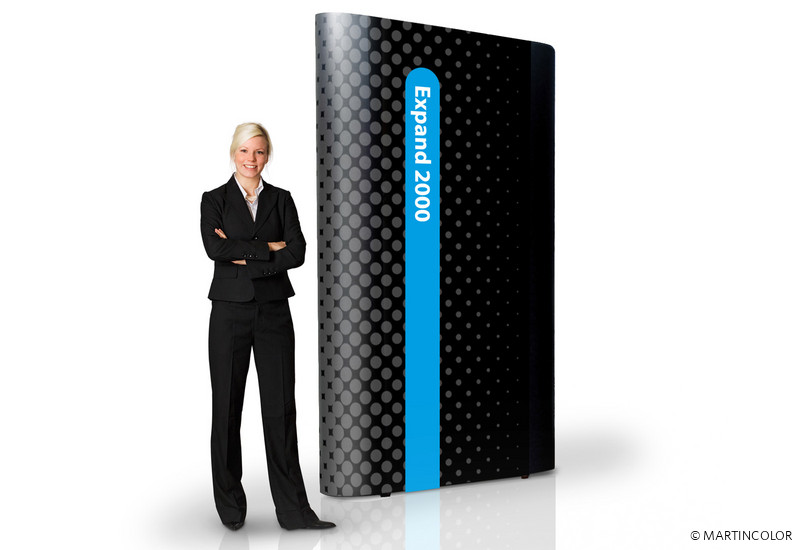 Das Grundgerüst von Expand 2000 besteht aus einem faltbaren Scherengittersystem, an dem individuell bedruckte Grafikpanels mittels Magnetstreifen angebracht werden können. Durch die patentierte Systemtechnik ist innerhalb weniger Minuten eine leicht gewölbte Präsentationswand mit Ihrer Werbebotschaft einsatzfertig aufgestellt. Expand 2000 ist in verschiedenen Größen und Formen erhältlich. Expand 2000 ist entweder als PopUp-Display oder als erweiterbarer Messestand einsetzbar. Kombiniert man gerade und gebogene Systeme miteinander und erweitert diese um integrierte Vitrinen- oder Ablageelemente, entsteht eine hochwertige, schnell aufzubauende Messelösung.