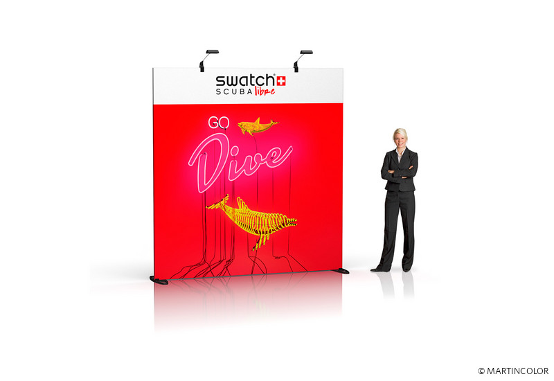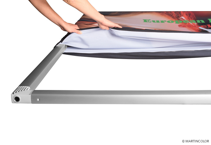 Die neue GrandFabric Straight Messewand von Expand besticht durch eine innovative und durchdachte Konstruktion. Der Anspruch bei der Entwicklung war, ein Messesystem zu schaffen, das leicht und flexibel im Aufbau, erweiterbar und modular in der Anwendung und einfach und kleinteilig im Transport ist. Die Grundstuktur der GrandFabric Straight Messewand besteht aus einem zusammen steckbaren Rahmengerüst. Über diesen Systemrahmen wird ein individuell bedruckter Textildruck gezogen und an der System-Unterseite mit einem Reißverschluss fixiert. Der individuelle Textildruck kann sowohl einseitig als auch doppelseitig erfolgen. Durch die Systemfüße, die an den Rahmen gesteckt werden, steht die Präsentationswand GrandFabric sicher und stabil. Die mobile Messewand GrandFabric Straight ist in vielen verschiedenen Größen lieferbar. Der Transport der Werbewand erfolgt in einem rollbaren Transport-Trolley. Das Besondere ist jedoch, dass man mehrere GrandFabric Messewände, egal ob diese gerade oder gebogen sind, zu einem großflächigen Messestand in unterschiedlichen Formen und Größen zusammensetzen kann. Neu ist der zusätzliche Einsatz der GrandFabric Lightbox. So wird Ihr Messestand zu einem echten Highlight auf jeder Messe und jedem Event.