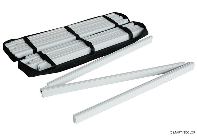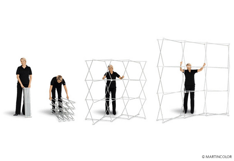 Die GRID Faltwand ist ein Update unserer bekannten Textil-Faltwand Easy Fabric. Wie diese auch, bietet GRID eine der schnellsten Möglichkeiten zur attraktiven Bild- bzw. Informationspräsentation. Während jedoch bei Easy Fabric der Stoff mit einer Klett-Flausch-Verbindung am System befestigt ist, wird bei GRID der Stoff mittels eines Gummikeders an der umlaufenden Nut am System angebracht. So wird der Stoff völlig knitterfrei gespannt. Trotzdem geht der Aufbau so schnell, dass innerhalb von wenigen Minuten eine Bildwand von 5 m² aufgebaut ist.