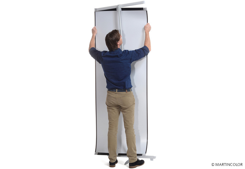 Warum soll man sich zwischen Banner oder PopUp-Wand entscheiden, wenn man beides haben kann? Jetzt gibt es das revolutionäre und ultraleichte Banner-Verbindungs-System ISOframe Ripple. Grundlage des Systems sind zwei stabile Kassettenbanner-Systeme mit einer Breite von 80 cm und 210 cm Höhe. Durch eine flexibel bewegbare Verbindungsbahn können die zwei Kassettenbanner-Systeme miteinander verbunden werden. Die so entstandene Wand ist völlig flexibel und kann in verschiedene Formen gebogen werden. Unterschiedliche räumliche Gegebenheiten sind nun kein Problem mehr! Die Verpackung des Systems erfolgt in einem Transportköcher, der (versehen mit einer Grafikbanderole und einer Tischplatte) als Theke eingesetzt werden kann. Das Gewicht des 3-er KIT beträgt inkl. Thekenplatte und Banderole 18 kg.