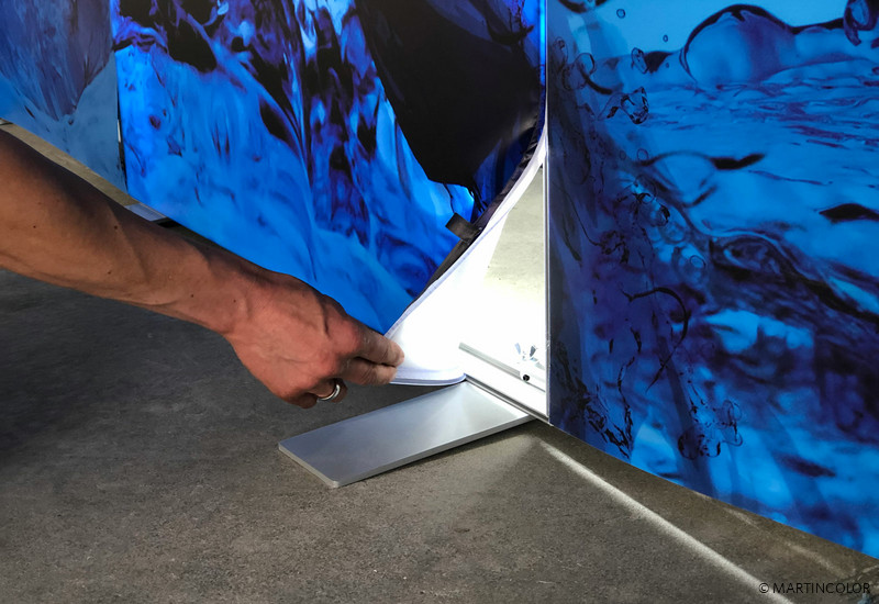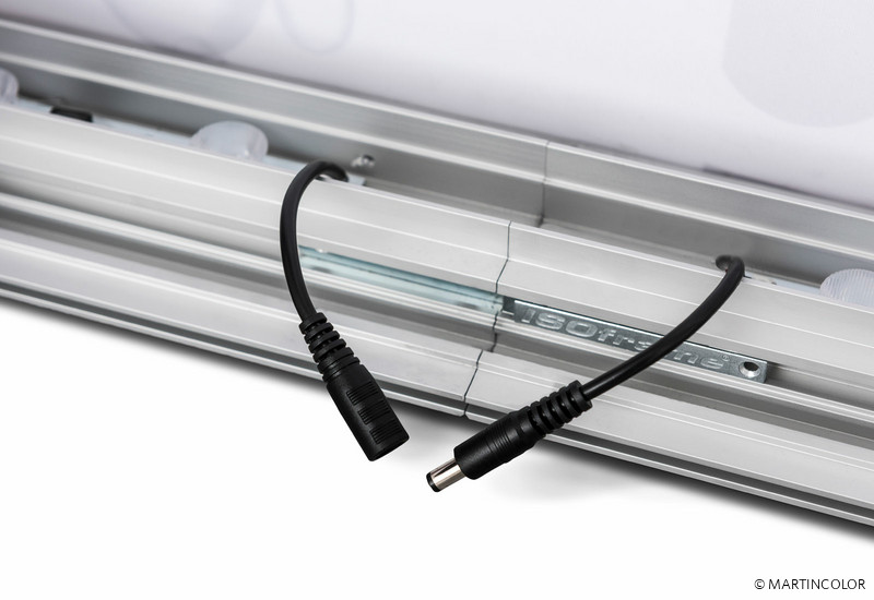 Jetzt kann Ihre ISOframe Wave Messewand zusätzlich um ein leistungsstarkes LED-Modul erweitert werden. Die ISOframe Lightbox gibt es in den Breiten 100, 150, 200, 250 und 300 cm und in Ausführungen passend für den Einbau in ein ISOframe Wave Midi oder Maxi System. Die Grundstruktur der ISOframe Lightbox besteht aus Aluminium mit integrierten LED-Modulen. Zum Aufbau werden die Aluminiumschienen mit einem Steckmechanismus verbunden. Der Systemrahmen ist mit Standfüßen ausgestattet, die vorderseitig etwa 18 cm herausragen. Damit das System nahe der Wand platziert werden kann, sind rückseitig keine Systemfüße vorhanden. Die individuelle Bespielung der Lightbox erfolgt über einen textilen Druck der sich einfach an dem System anbringen und selbstverständlich sekundenschnell austauschen lässt. Transportiert wird die ISOframe Lightbox in einer robusten und stoßfesten Kartonage.