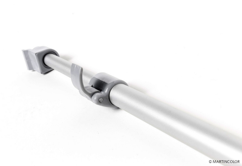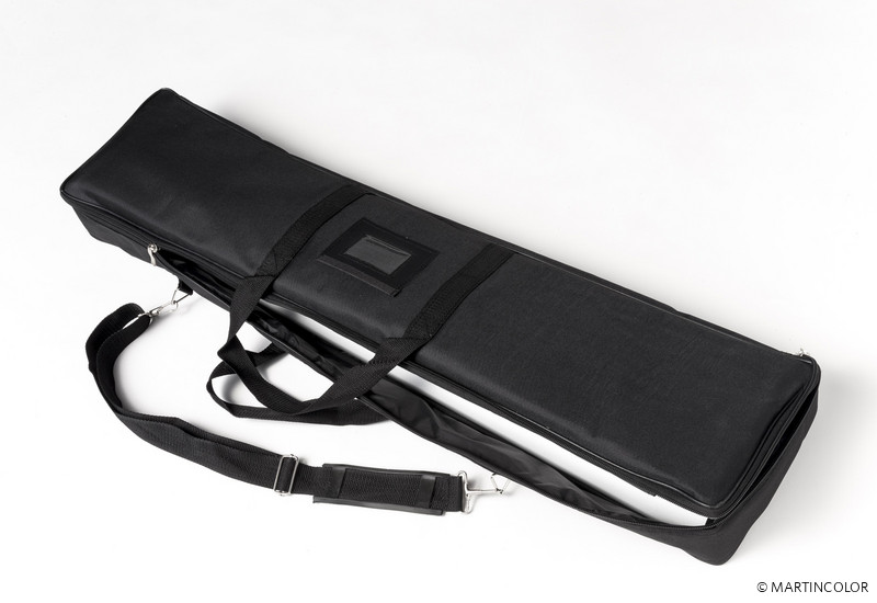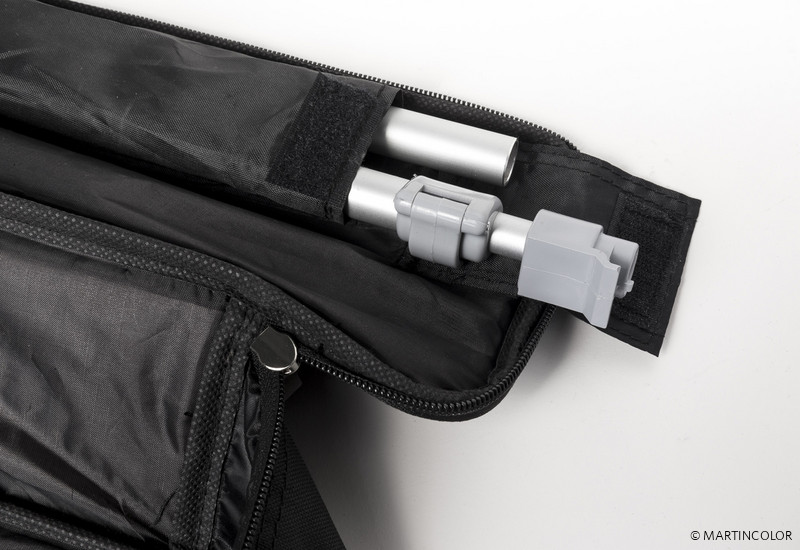 Der Grafikdruck befindet sich geschützt im Standfuß des Systems und wird durch einfaches "Herausziehen" präsentiert. Die Fixierung der Grafik erfolgt durch eine rückseitige Teleskopstange (mögliche Systemhöhe dadurch von 160 cm bis max. 220 cm). Bei Bedarf kann kann der Grafikdruck natürlich durch einen neuen, aktuelleren Druck ersetzt werden. So kann ein und dasselbe System über viele Jahre hinweg eingesetzt werden. Das System wird inklusiv einer Transporttasche ausgeliefert.