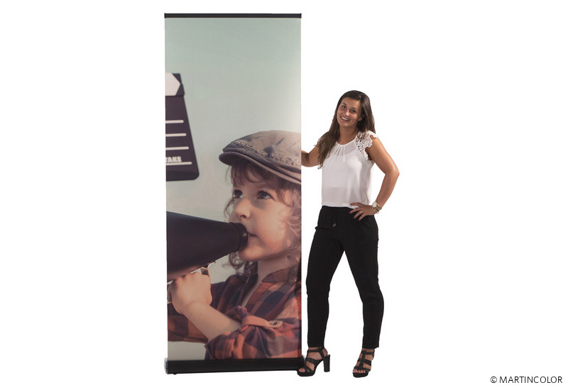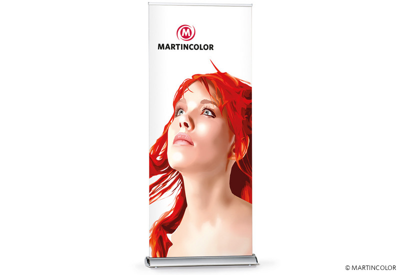 Der Grafikdruck erfolgt wahlweise auf B1 zertifiziertem Bannersoft-Material 720 dpi (Qualitätsstufe III), Aluminiummaterial (Qualitätsstufe II) oder Aluminiummaterial mit kratzfester Schutzfolienbeschichtung 1200 dpi (Qualitätsstufe I). Das RollUp PRO ist in vielen unterschiedlichen Breiten (85, 100, 120 und 150 cm) lieferbar.