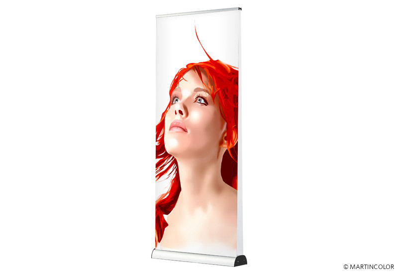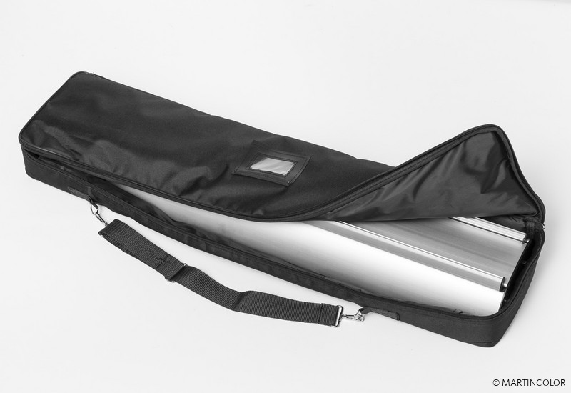 Das RollUp Twin ist besonders attraktiv, da sich zwei mit einer Grafik-, Bild- oder Textinformation versehene Panels aus dem System-Standfuß herausziehen lassen. So entsteht eine doppelseitige Präsentationsfläche. Die im Gehäuse eingerollten Grafiken sind beim Transport hervorragend geschützt. Bei Bedarf kann können die Grafikdrucke natürlich durch neue, aktuellere Drucke ersetzt werden. So kann ein und dasselbe System über viele Jahre hinweg eingesetzt werden.
