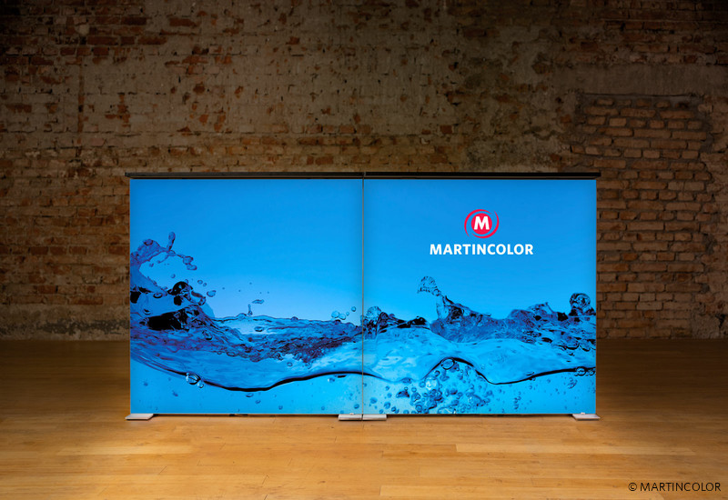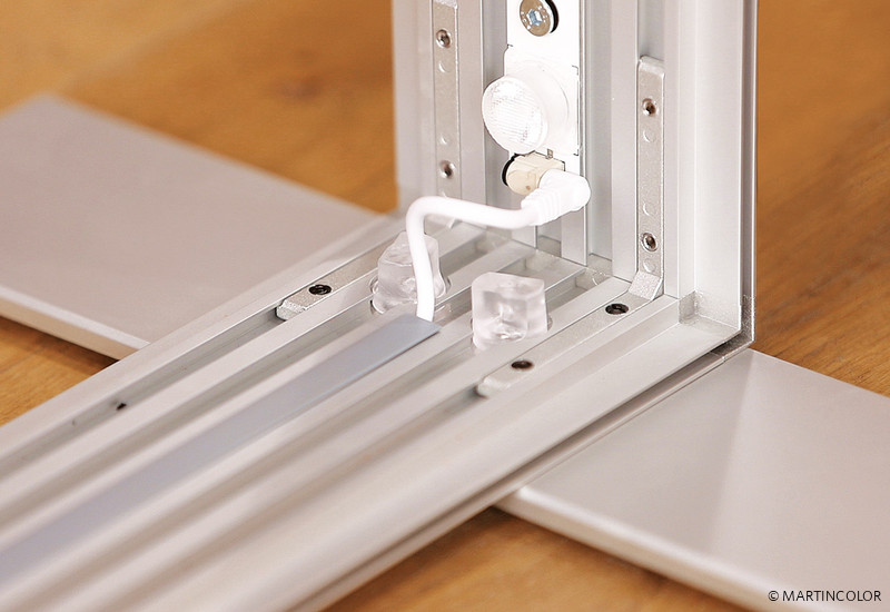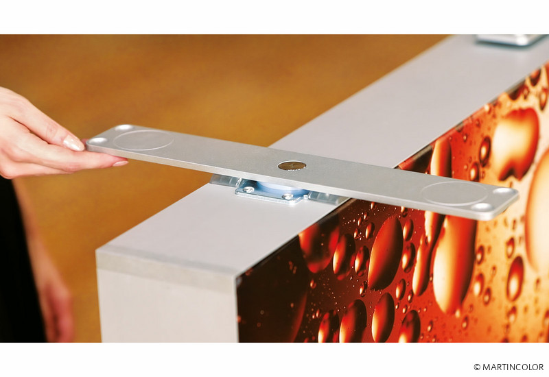 Die ALU STAR Theke kann ideal mit den LED-Leuchtwänden ALU STAR kombiniert werden. Informationen zu dieser Leuchtwand finden Sie unter https://www.martincolor.de/messestaende/leucht-messestaende/alu-star.html