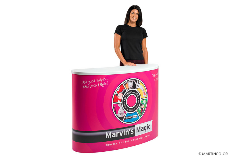 Neu im Promotor-Programm ist das Model "Finesse". Ganz wie alle anderen Theken aus der Promotor-Familie, besteht dieser nierenförmige Promotor aus Polysteren/Polypropylen und lässt sich komplett auseinanderbauen, sodass das Transportmaß des Counters nur 125x62x13 cm, bei 13 kg Gesamtgewicht, beträgt. Die Finesse-Promotortheke ist durch ihre Materialbeschaffenheit für den In- als auch für den Outdoor-Einsatz geeignet. Sie lässt sich komplett mit einer Grafikbanderole versehen.