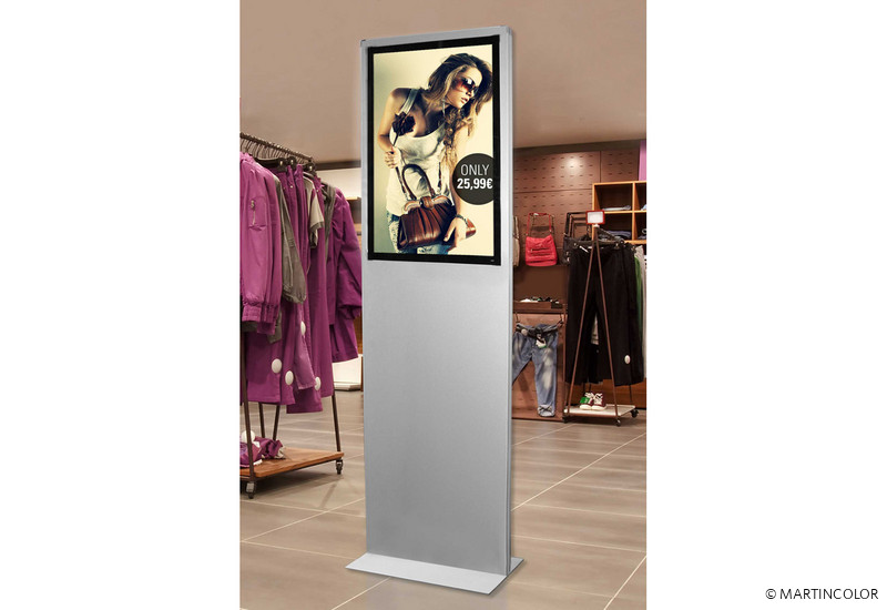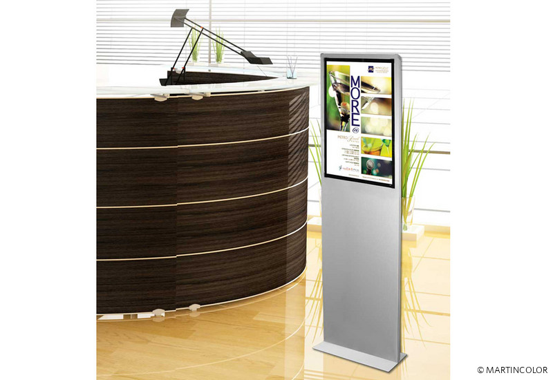 Das trendige Bodendisplay iPoint Lumo mit beleuchter Info-Präsentation ist ein toller Hingucker für Shop, Bank, Versicherung, Museum sowie jeden Event. Alle Materialien sind hochwertig verarbeitet und äußerst stabil. Auf der Rückseite befindet sich der praktische Schalter und der Kabelausgang mit Transformator. Mit seinem schlankem Design, den geraden Linien und eleganten Farben steht Ihre Information oder Werbe-Botschaft im Rampenlicht und erhält die volle Aufmerksamkeit. Das iPoint Lumo ist in zwei verschiedenen Größen erhältlich.